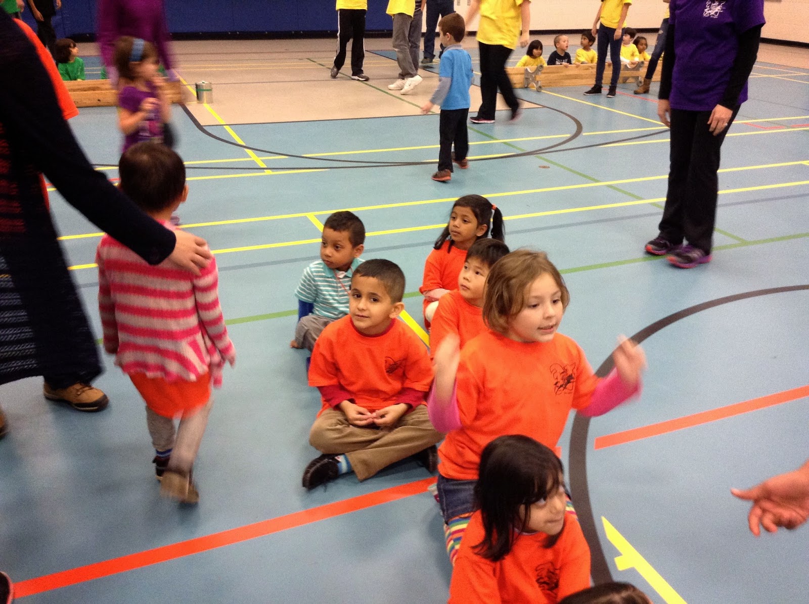 were so excited to put on their new colour shirts and line up in their appropriate spots