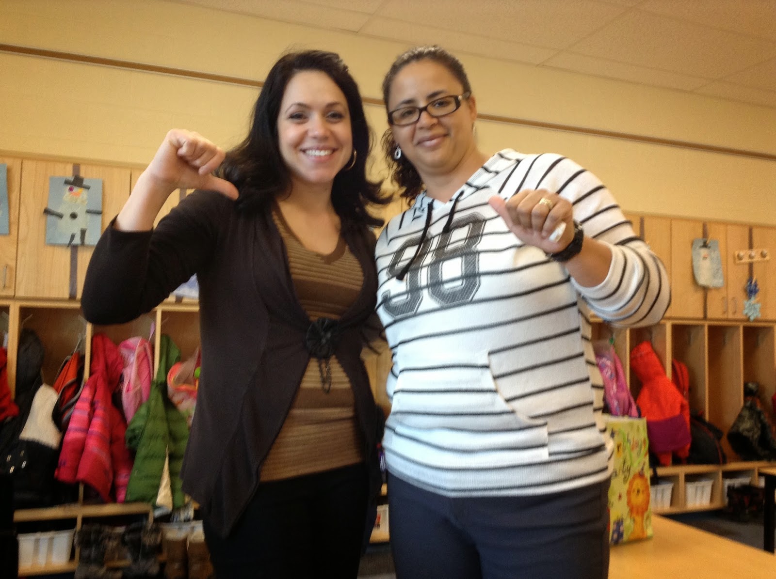 We talked about patterns and how we can find them everywhere. We made patterns with cubes, with food, with music and with bears. Then we decided to have a pattern day, where we could wear a pattern and talk about it. Our students were very excited today when they came to school, they could n't wait to tell us. Here we all are wearing our pattern what a GREAT bunch!!